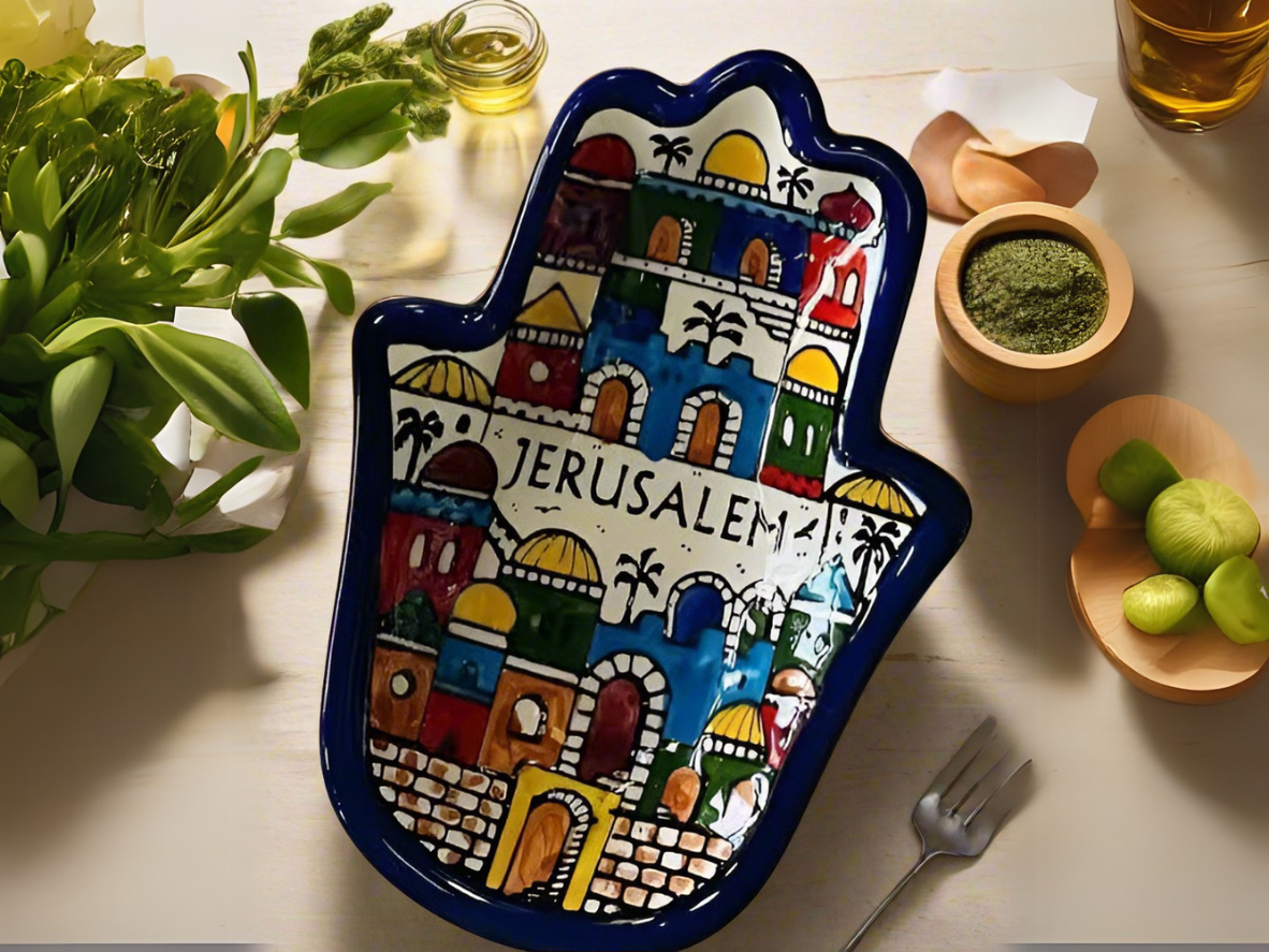 Handcrafted Ceramic Dual Appetizer Plate | Kuffiyeh & Olive Harmony Designs