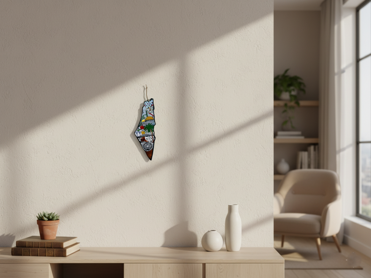 Handcrafted Ceramic Palestine Map Wall Decor – Large Authentic Hebron Pottery