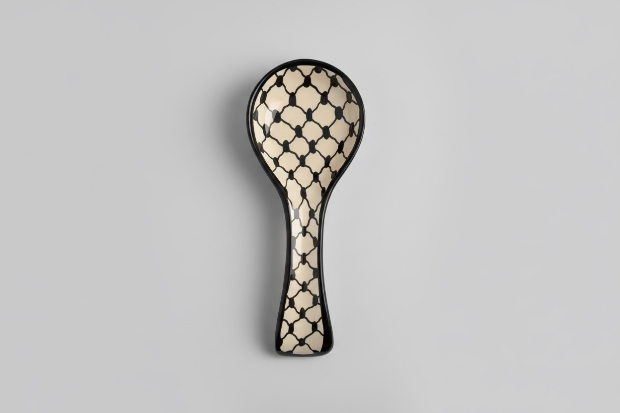 Keep your countertop clean in style with this handcrafted ceramic resting spoon—an everyday kitchen essential, elevated through thoughtful design and artisan craftsmanship. Made in Hebron and painted entirely by hand, each piece features a rich, colorful motif that brings both charm and character to your cooking space.